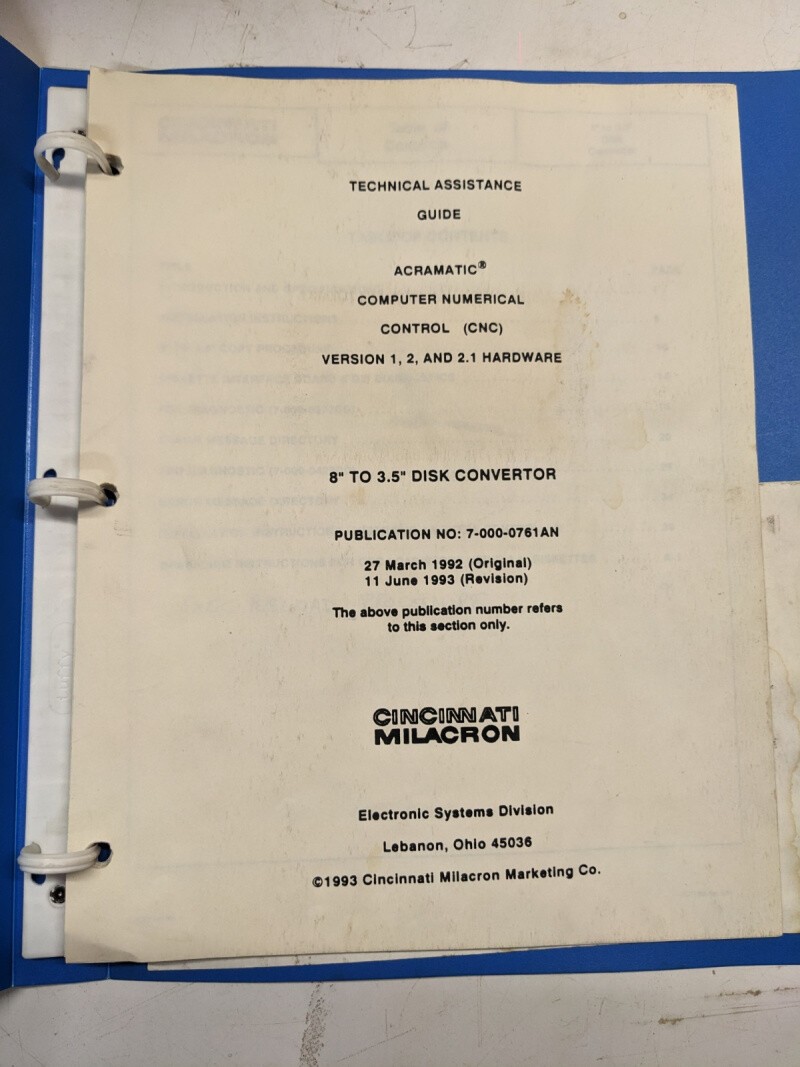 Cincinnati Milacron Technical Manual Arcaread Guide Cnc 1 2.1 8” To 3.5” Convert