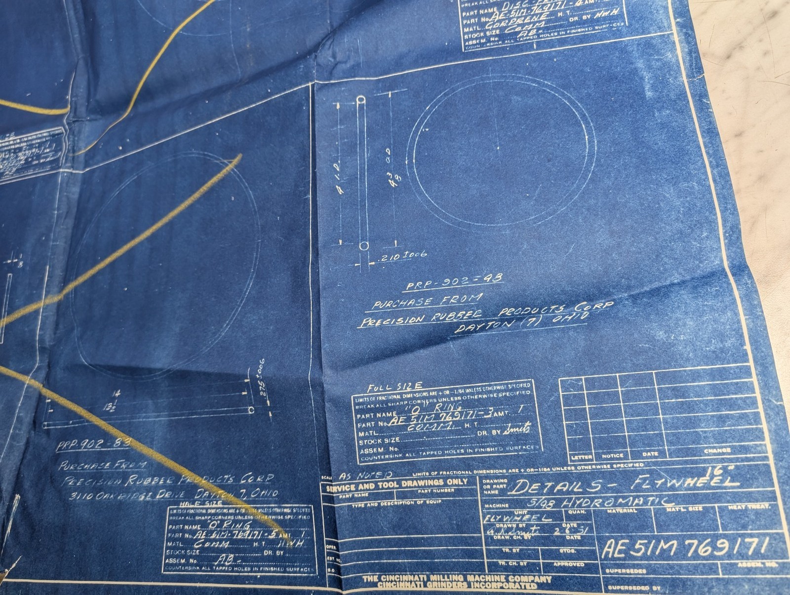 Cincinnati Milling Machine Assembly Print 5/48 16” Flywheel Ae-51M-769171