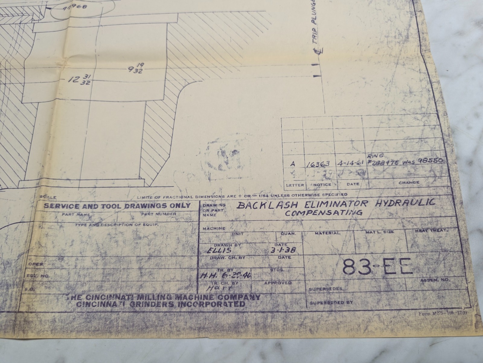 Cincinnati Milling Machine Backlash Eliminator Proposal Drawing Diagram Print