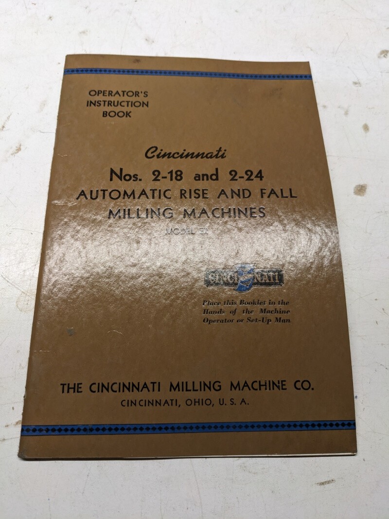 Cincinnati Milling Machine Operators Instruction Book Manual #2-18 2-24 1949