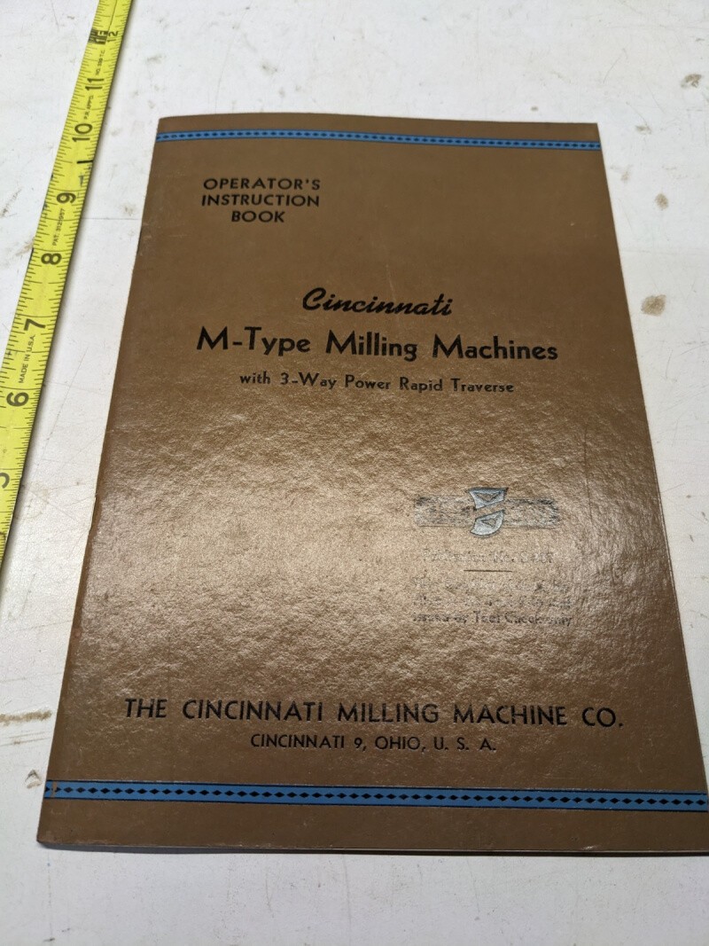Cincinnati Milling Machine Operators Instruction Book Manual M-Type 3 Way S-337