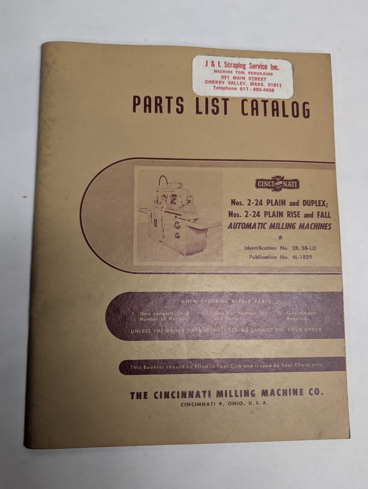 Cincinnati Milling Machine Parts List Catalog Manual 2-24 Plain Duplex Rise Fall