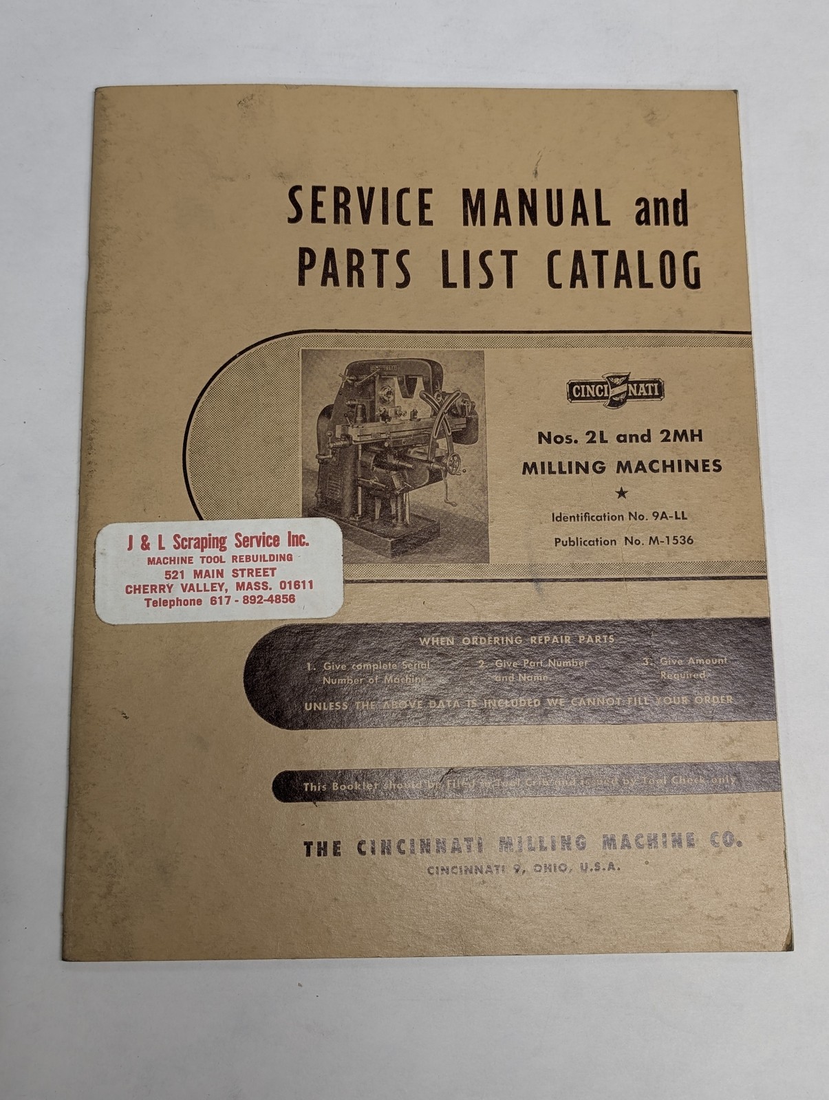 Cincinnati Milling Machine Parts List Service Repair Manual 2L 2Mh 9A-Ll 1947