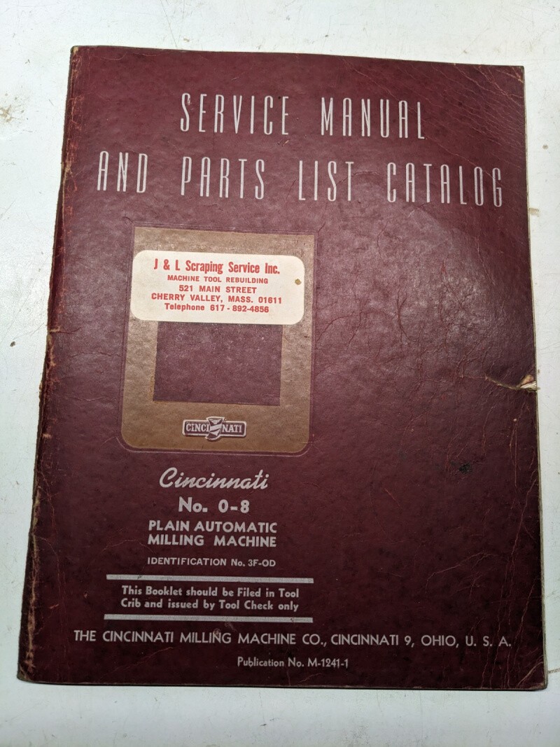 Cincinnati Milling Service Manual Parts List Catalog Book #0-8 3F-Od 1943 Shop