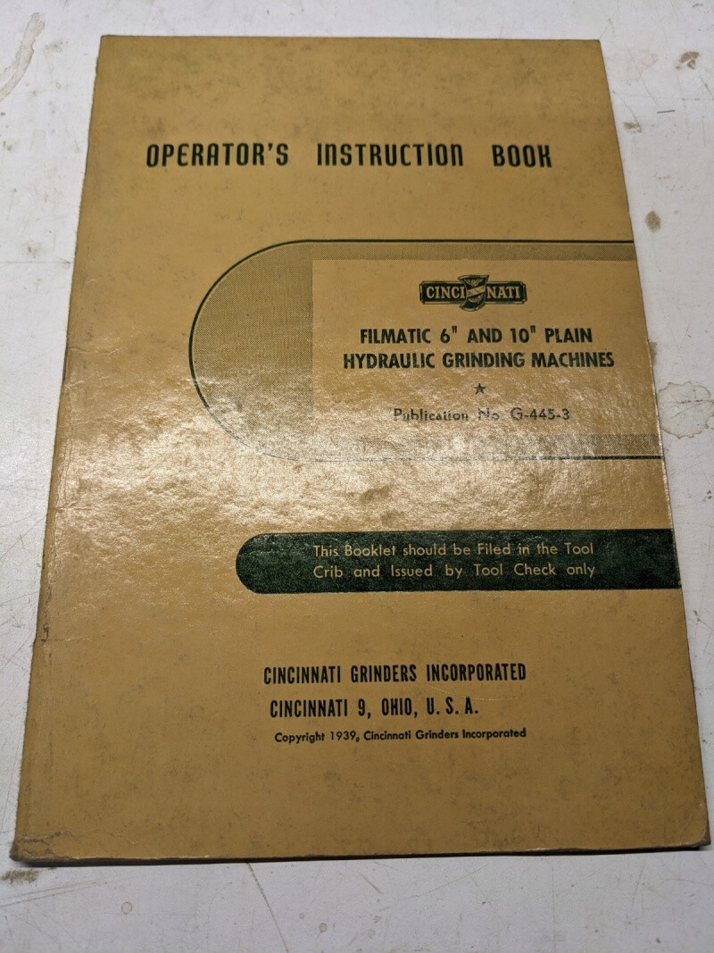 Cincinnati Operator Service Manual 6 10” Filmatic Grinding Machine 1955 G-445-3