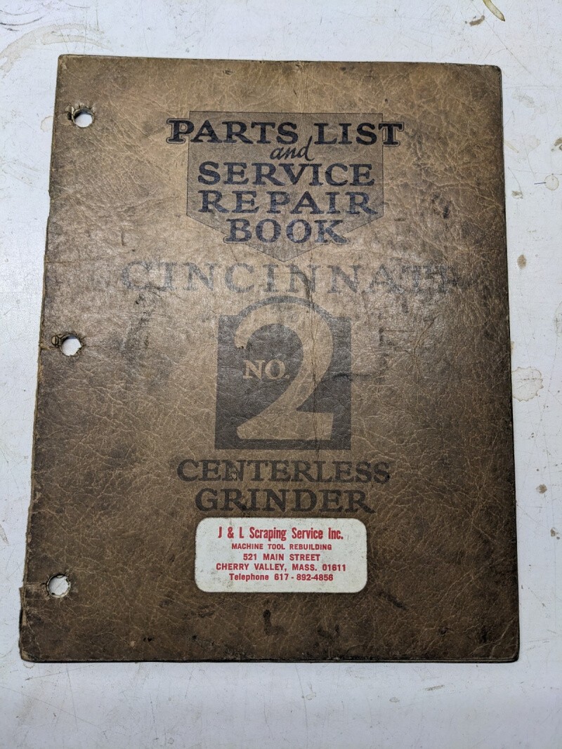Cincinnati Operator Service Manual Parts List Catalog #2 Centerless Grinder 1929