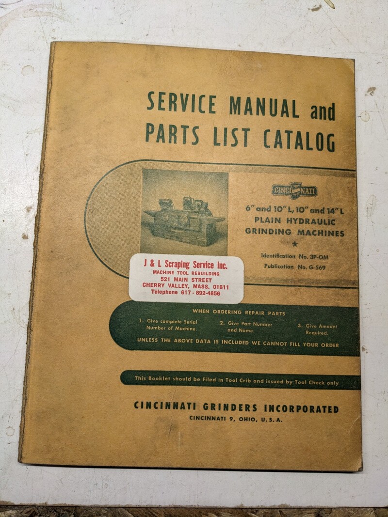 Cincinnati Operator Service Manual Parts List Catalog 6 10” 14L Grinding Machine