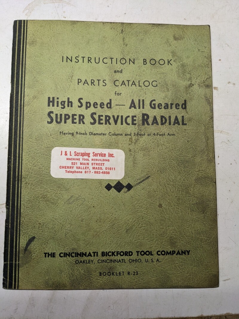 Cincinnati Operator Service Manual Parts List Super Service Radial Drill R-23