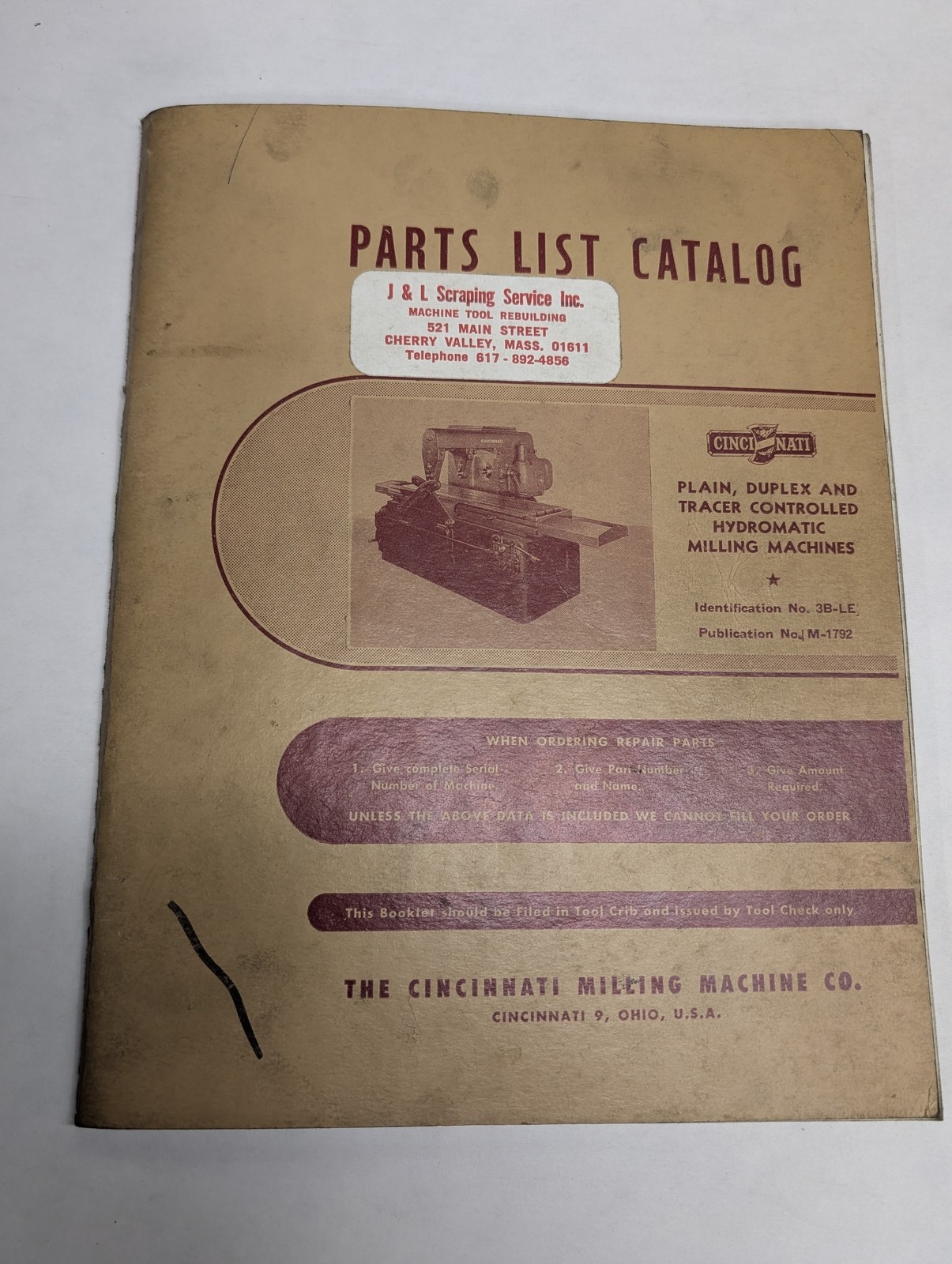 Cincinnati Parts List Catalog Manual Milling Machines Duplex Tracer 2B-Le M-1792