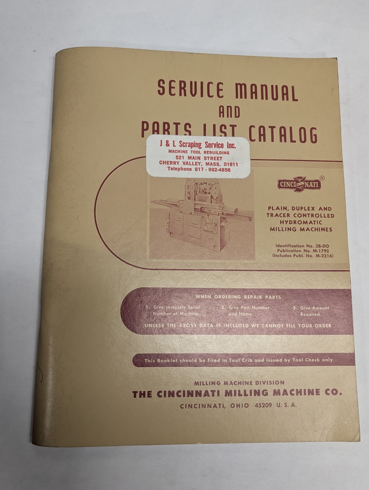 Cincinnati Parts List Service Repair Manual Hydromatic 3B-Do Plain Duplex Tracer