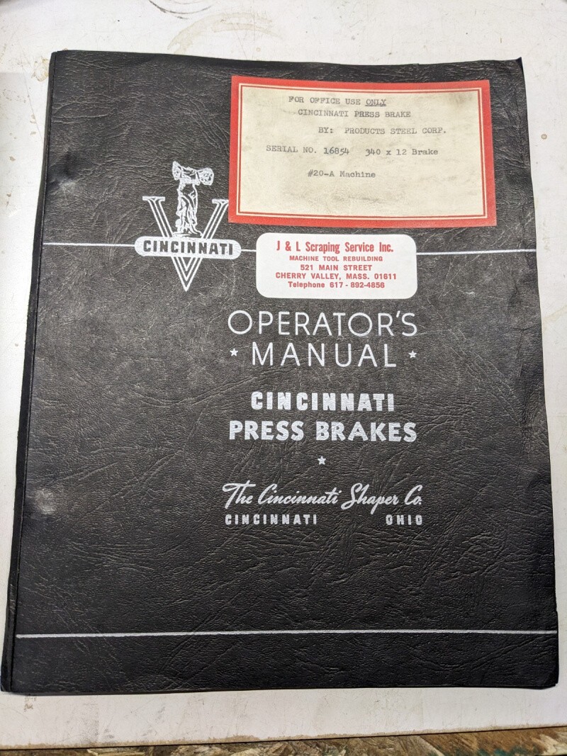 Cincinnati Press Brake Operator Service Manual Parts List Book #20-A 190 Series