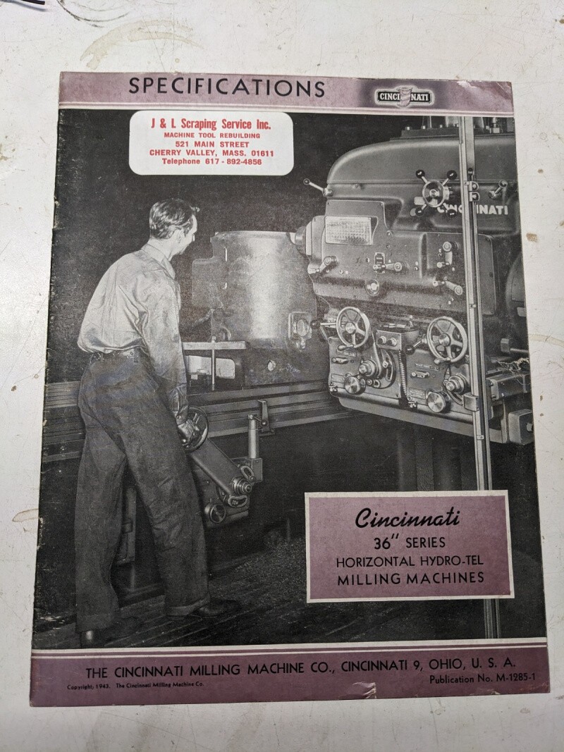 Cincinnati Sales Brochure Catalog 36” Series Hydro-Tel Milling Machine Specs