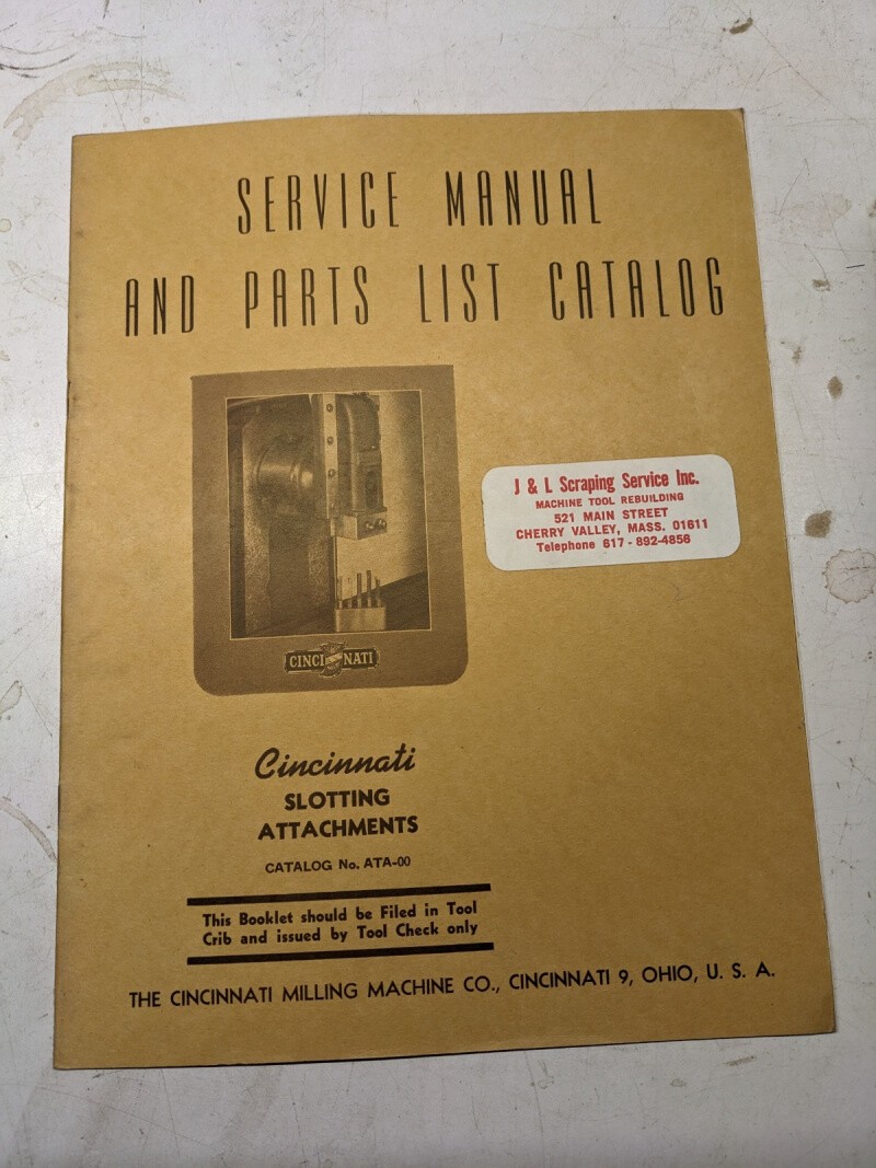 Cincinnati Service Manual Parts List Slotting Attachments 1944 Ata-00 M-1351