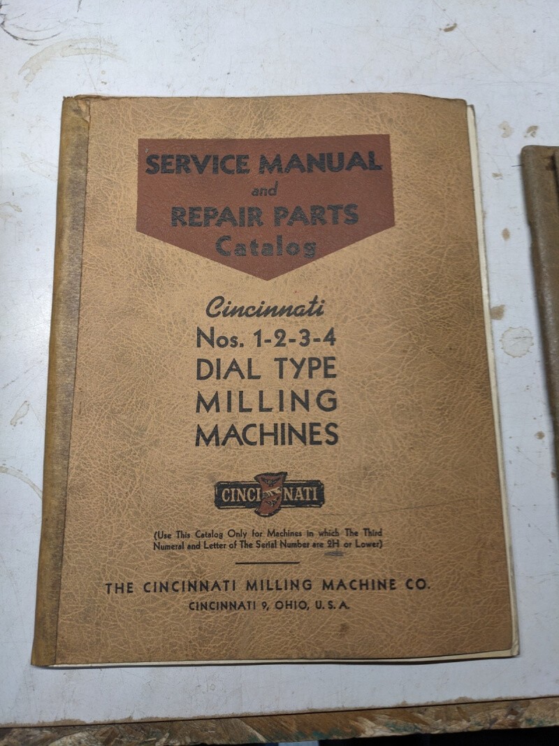 Cincinnati Service Manual Repair Part Book Catalog #1 2 3 4 Milling 1938 M-786-5