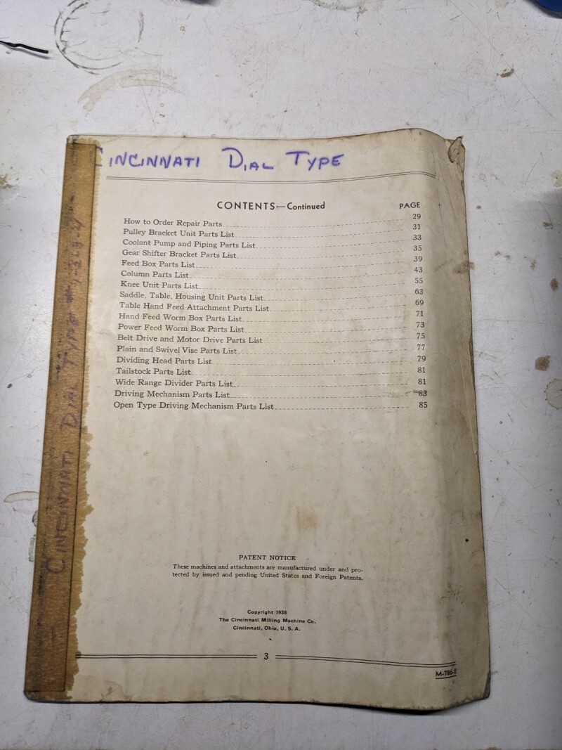 Cincinnati Service Manual Repair Part List Catalog #1 2 3 4 Milling M-786-2