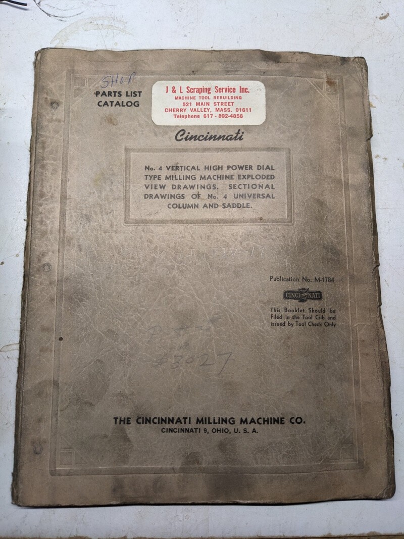 Cincinnati Service Repair Part List Catalog Manual #3 4 5 6 Milling Machine 1952