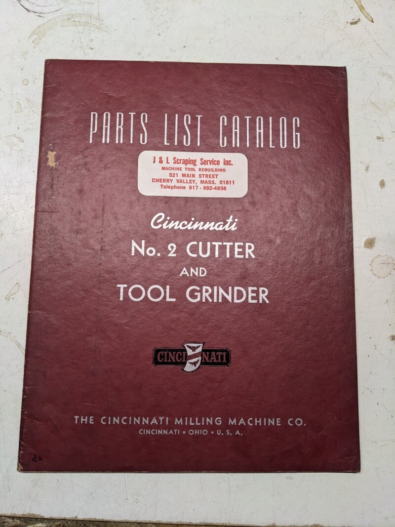 Cincinnati Service Repair Parts List Catalog Manual #2 Cutter Tool Grinder 1939