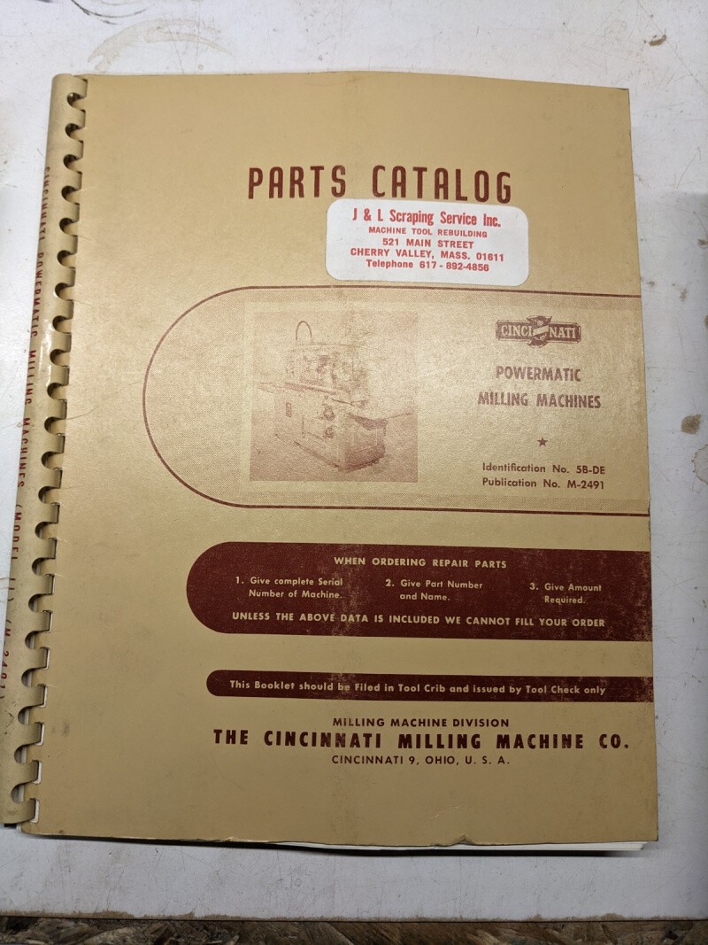 Cincinnati Service Repair Parts List Catalog Manual Powermatic Milling Machine