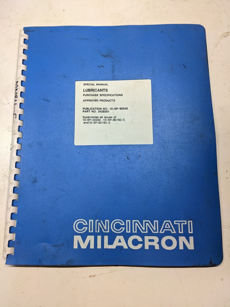 Cincinnati Special Service Manual Specifications Lubricant 10-Sp-90045 Products