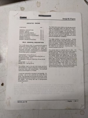 Clark Fork Lift Engine Manual 4G32 1.6L Service Repair Overhaul 1998 Sm 619
