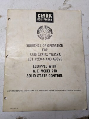 Clark Fork Lift Sequence Of Operation E355 Ge 210 Solid State Control Manual