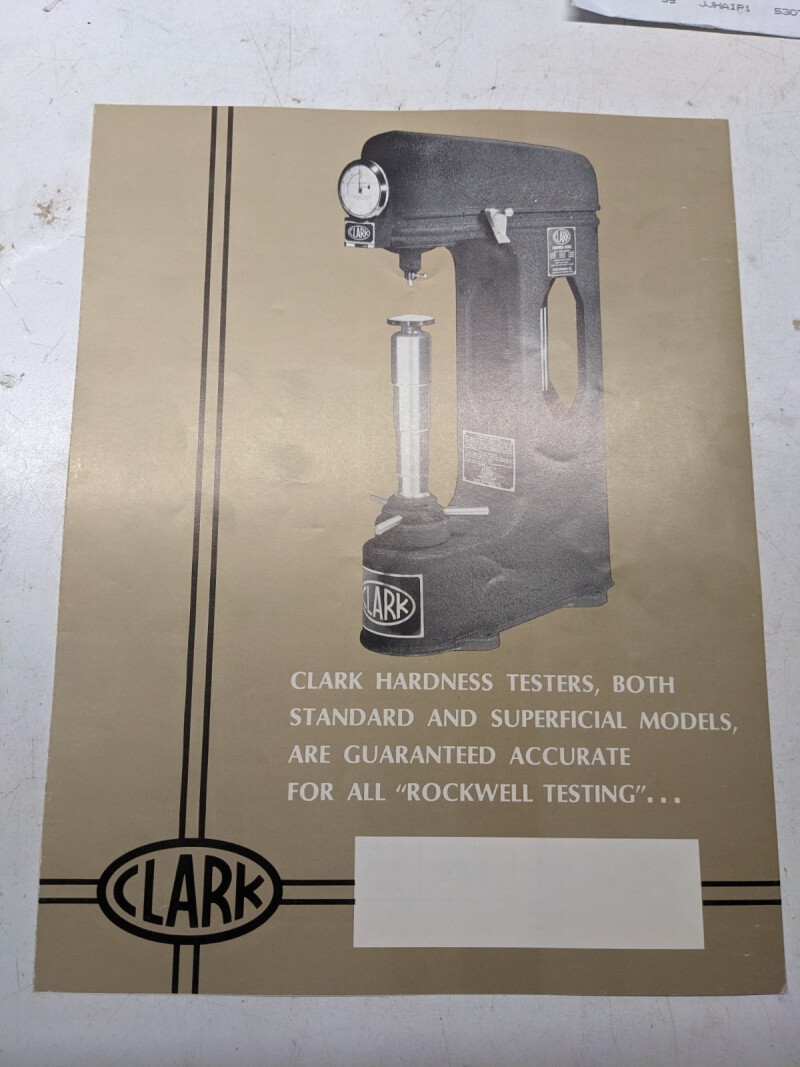 Clark Hardness Testers Rockwell Brochure Catalog Specifications Price List Chart