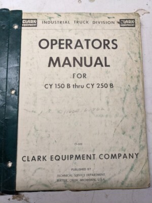 Clark Operators Manual Fork Lift Truck Cy 150 To Cy250 O-B88 1962