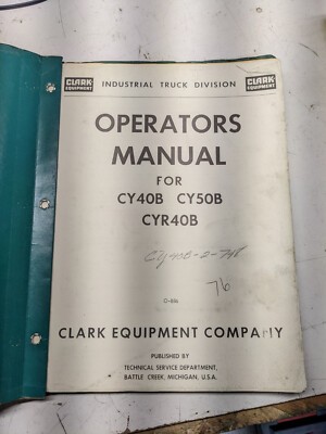 Clark Operators Manual Service Cy40B Cy50B Cyr40B O-B86 1962 Fork Lift Truck