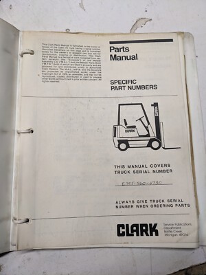Clark Parts List Book Manual E355-560-4730 Electric Fork Lift Truck