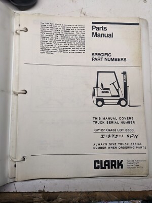 Clark Parts List Book Manual Gp127 I-275 6800 Spn 1988 Fork Lift Truck