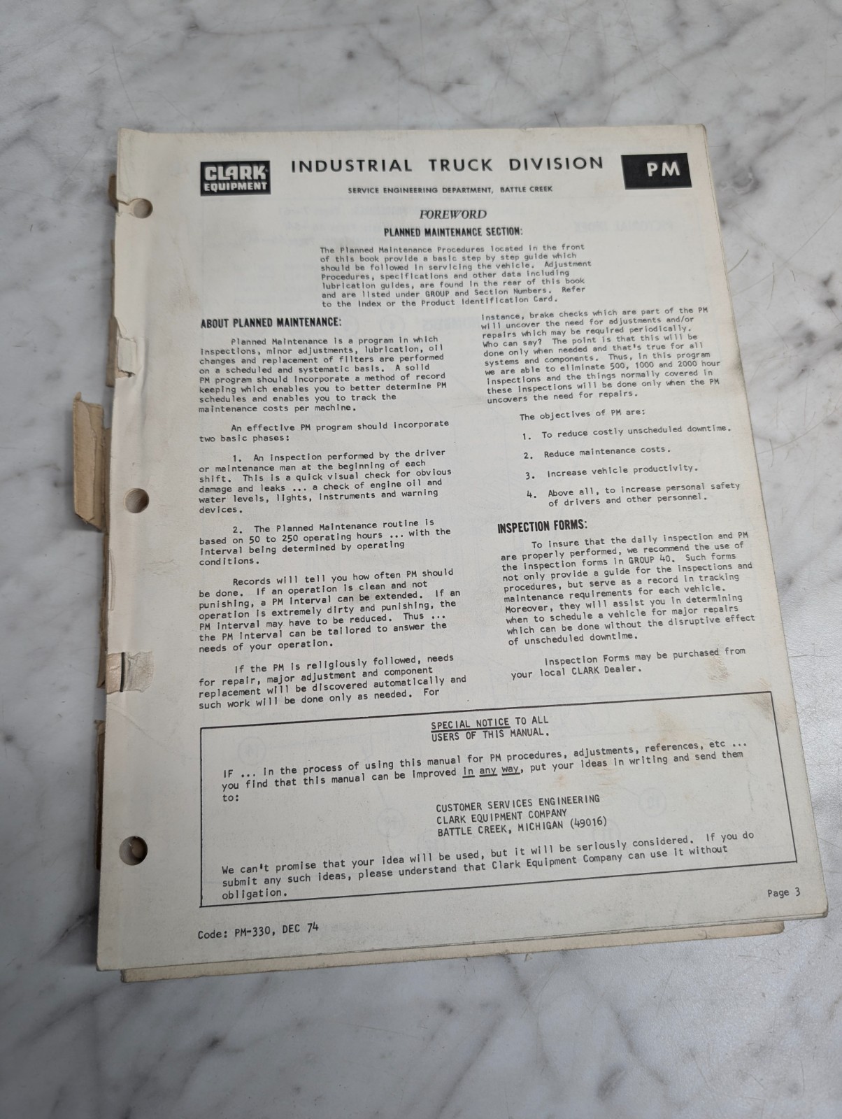 Clark Pma-424 Np500 35/45 Np245 Planned Maintenance Adjustments Shop Manual 1980