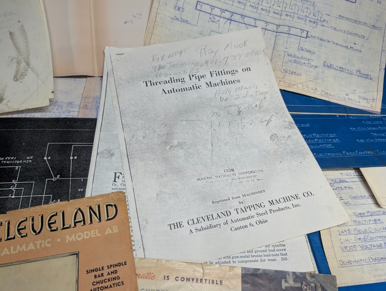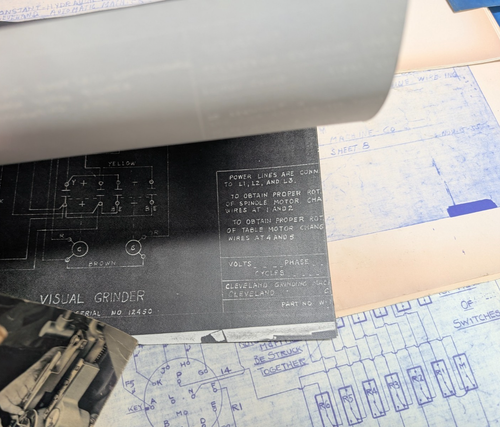 Cleveland Machine Tool Visual Grider Drawing Information Diagram Blue Print Lot