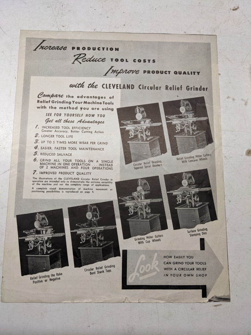 Cleveland Sales Advertising Brochure Circular Relief Grinder Vintage