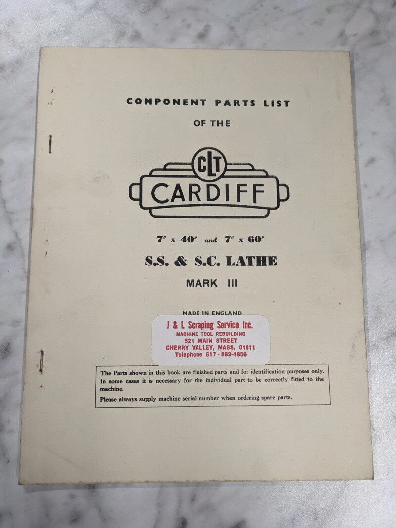 Clt Cardiff 7X40 7X60” S.S Sc Lathe Mark Iii Component Service Parts List Manual