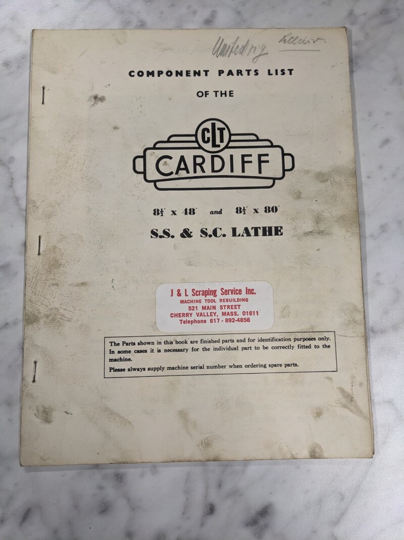 Clt Cardiff 8.5X48 8.5X80” S.S S.C Lathe Component Service Parts Book Manual