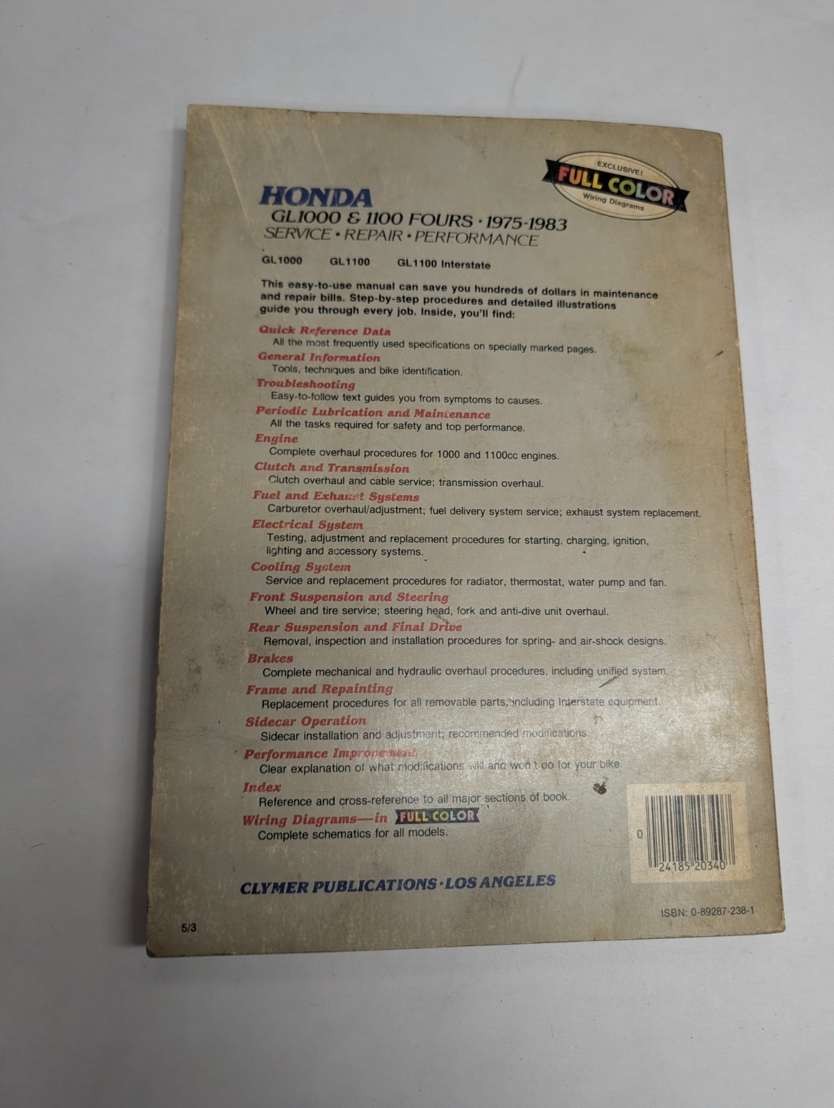 Clymer M340 1975-1982 Honda Gl1000 Gl1100 Shop Service Repair Manual Vtg Full