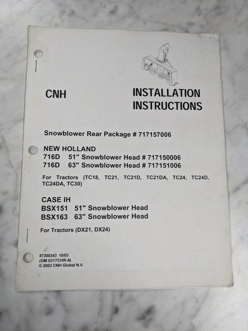 Cnh Installation Instruction Service Manual Snowblower Rear Nh Ih 716D Bsx1633