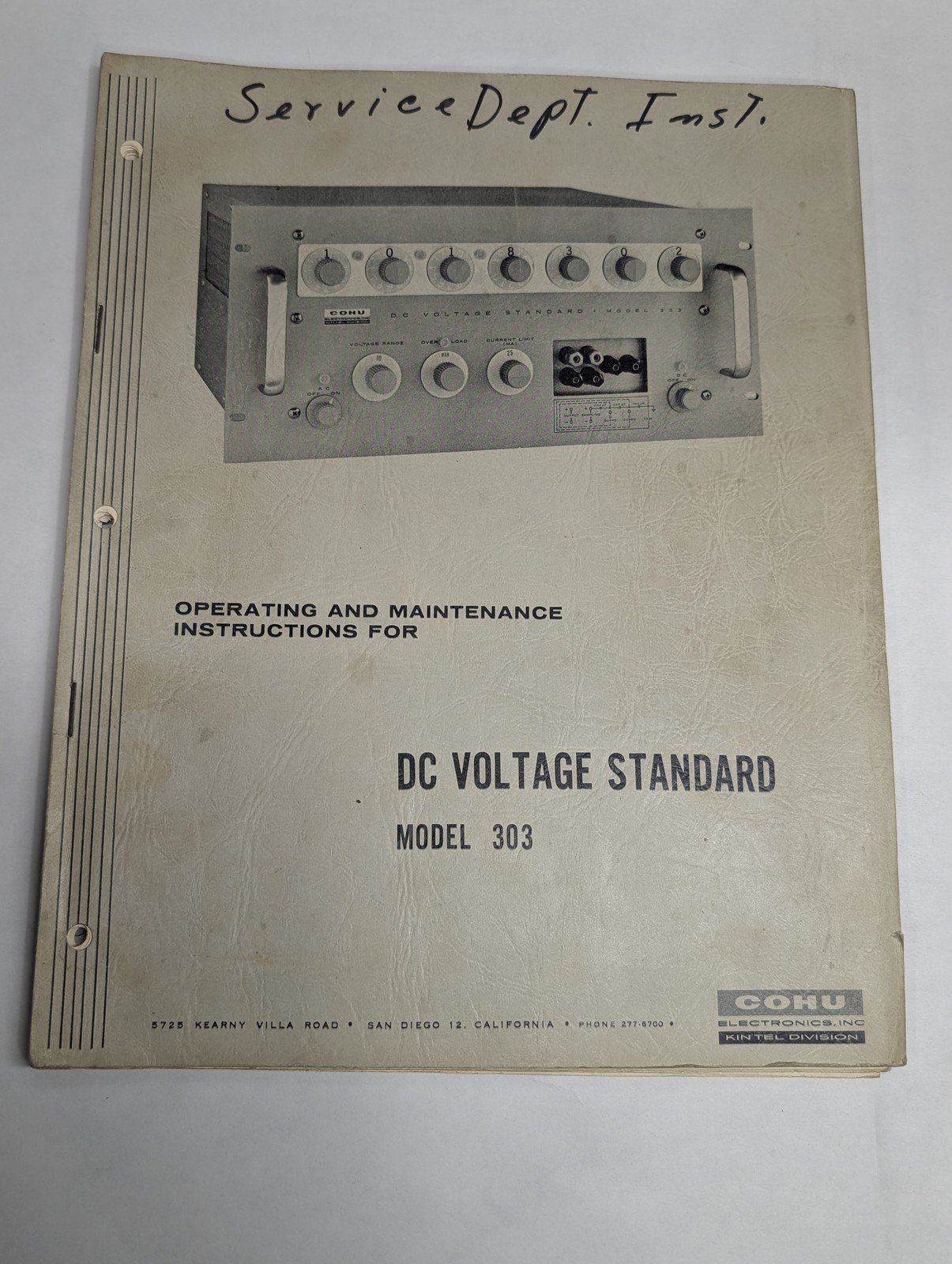 Cohu Operating Maintenance Instruction Manual Dc Voltage Standard Model 303 1963