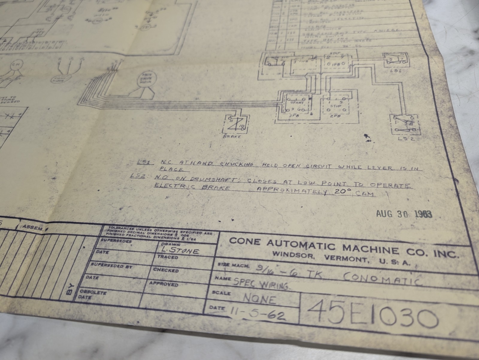 Cone Automatic Machine Tool Tk 45E1030 Electrical Wiring Diagram Drawing Print
