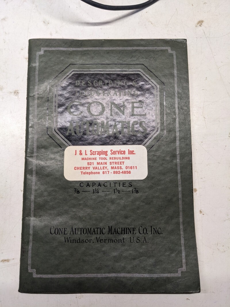 Cone Automatics Operation Manual Parts List Book 7/8 1.25 1.5 1.875 Cap. 1926