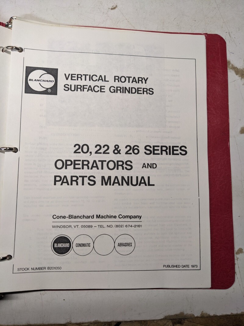 Cone Blanchard Operator Service Part Manual Surface Grinder 20 22 26 Series 1973