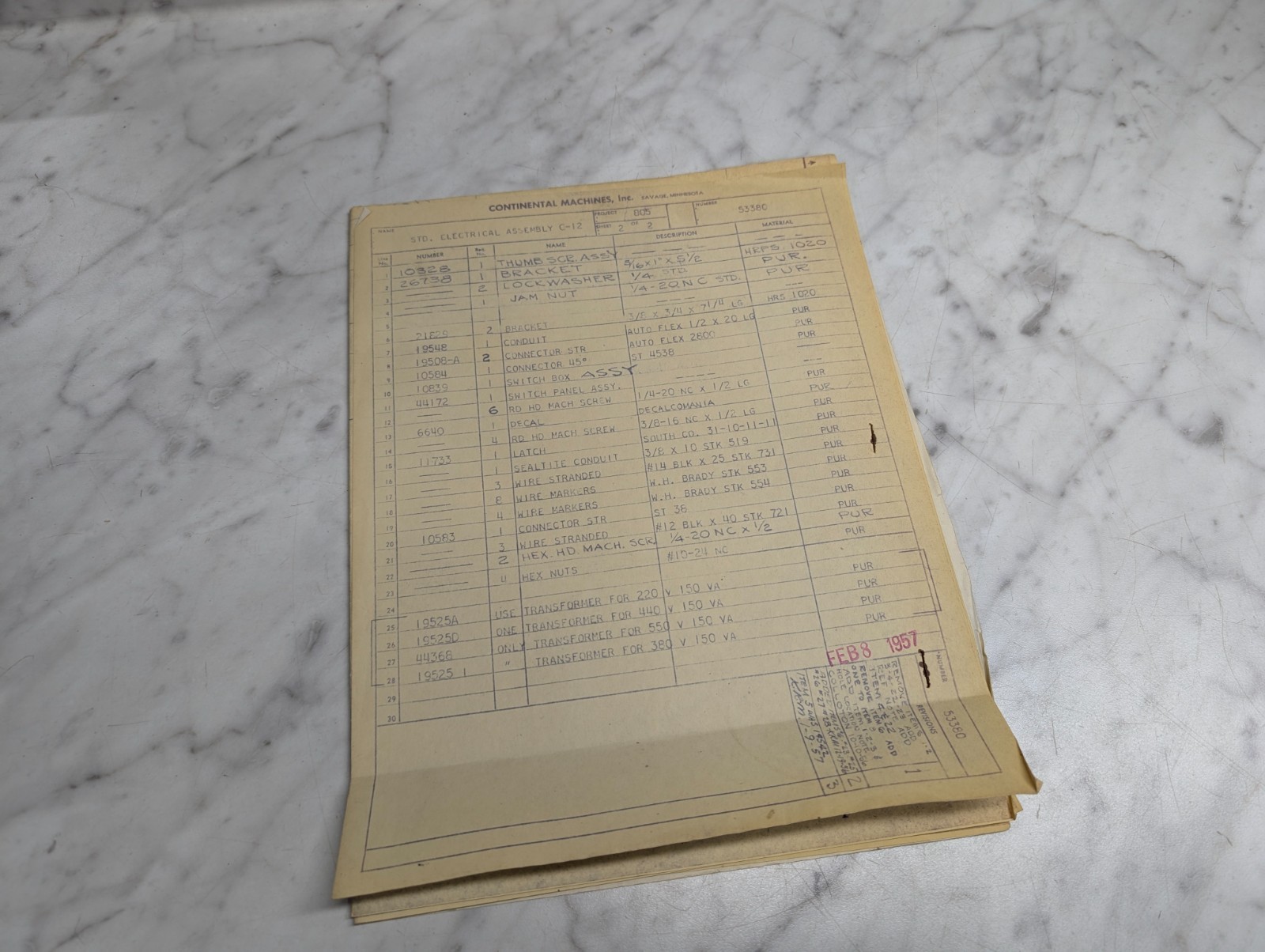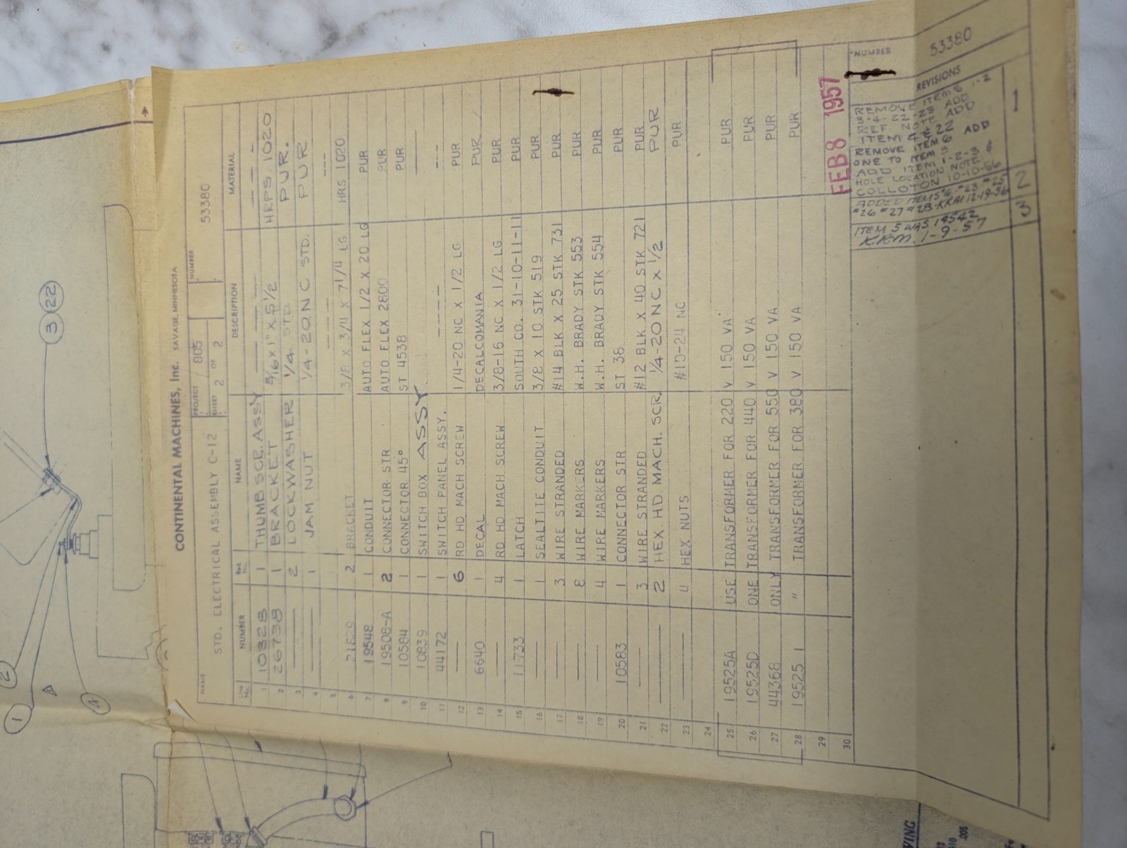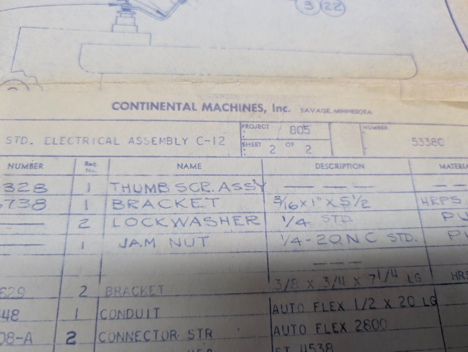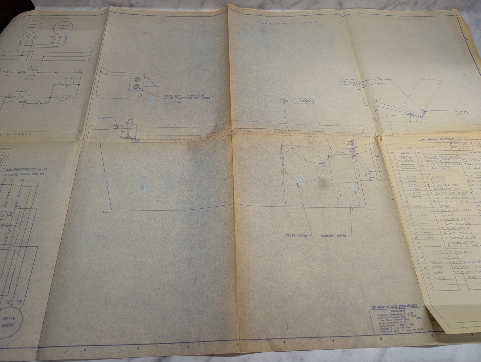 Continental C-12 Machine Tool Electrical Assembly Drawing Diagram Blue Print