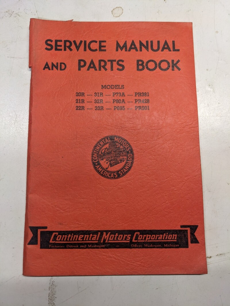 Continental Engine Service Manual Parts List Book Pr 33 22 695 32 21 80 428 1941