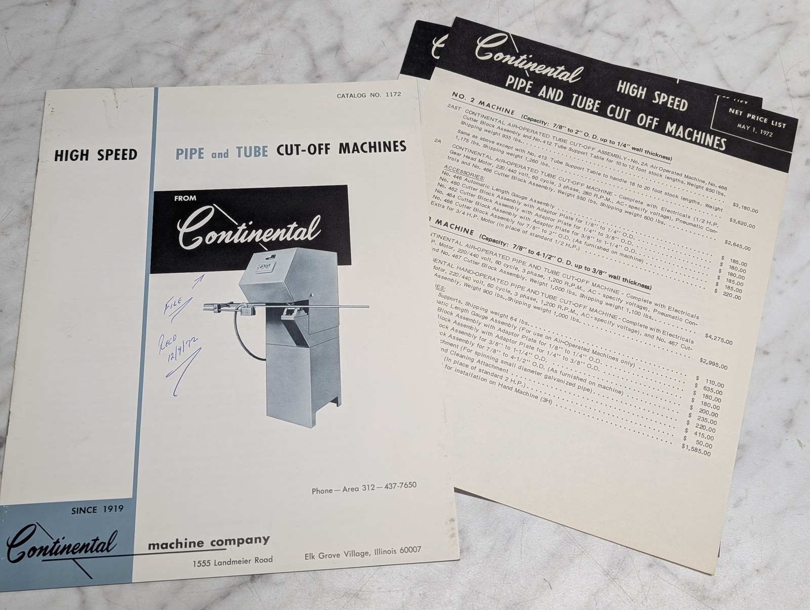 Continental High Speed Pipe Tube Cut Off Machines Catalog 1172 1972 Brochure
