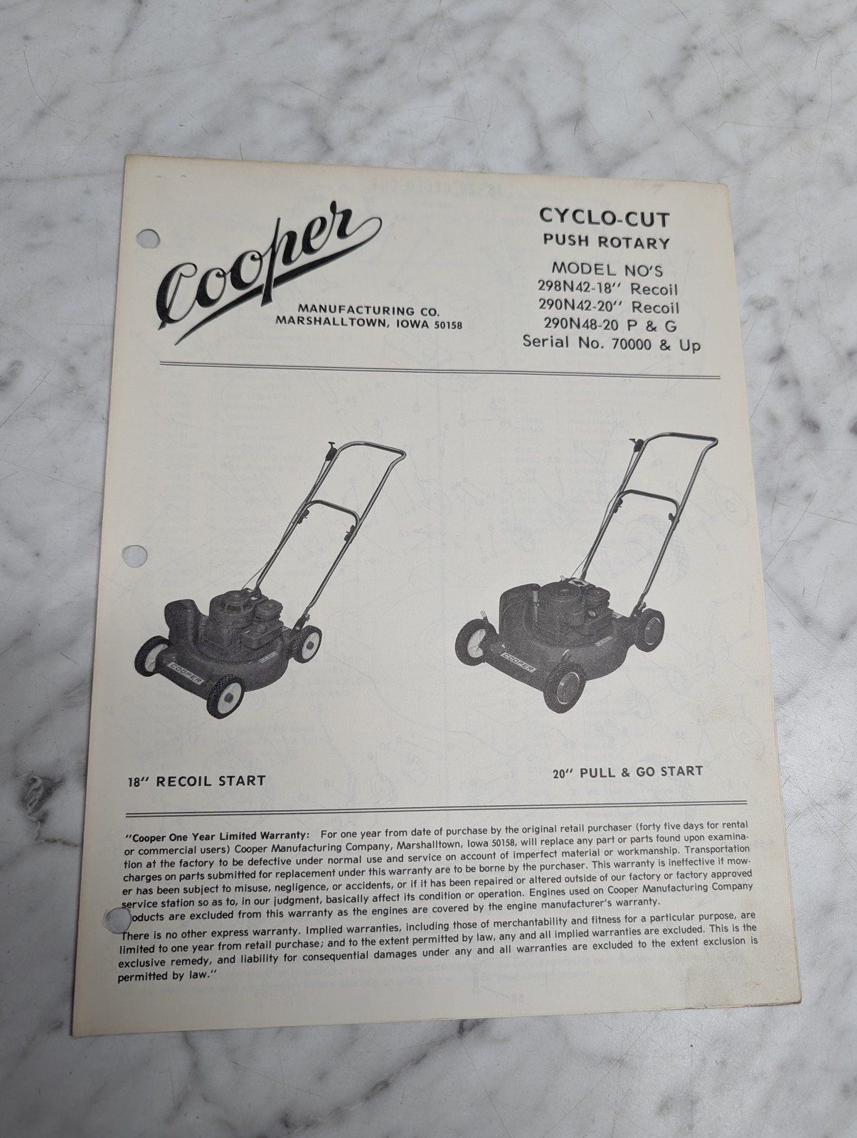Cooper Cyclo Cut Push Rotary Model Nos 298N42 18 Recoil 290N42 20 290N48