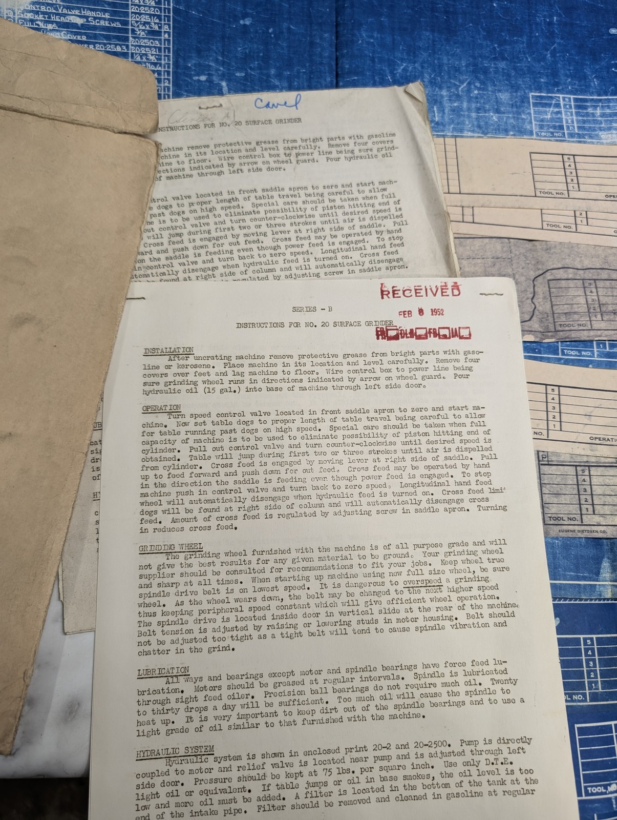 Covel Machine Tool #20 Surface Grinder Instructions Prints Diagrams Information