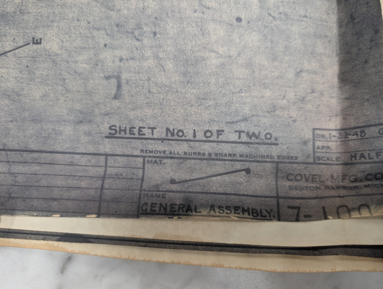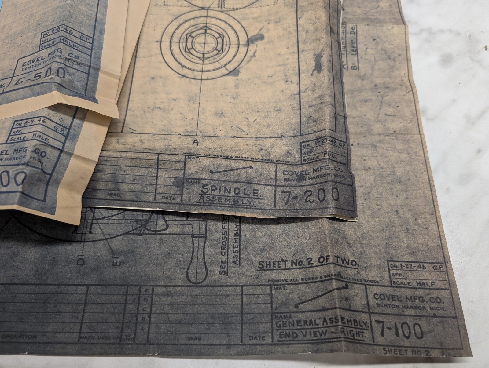 Covel Machine Tool #7 Grinder Drawings Diagrams Blue Prints Information Lot