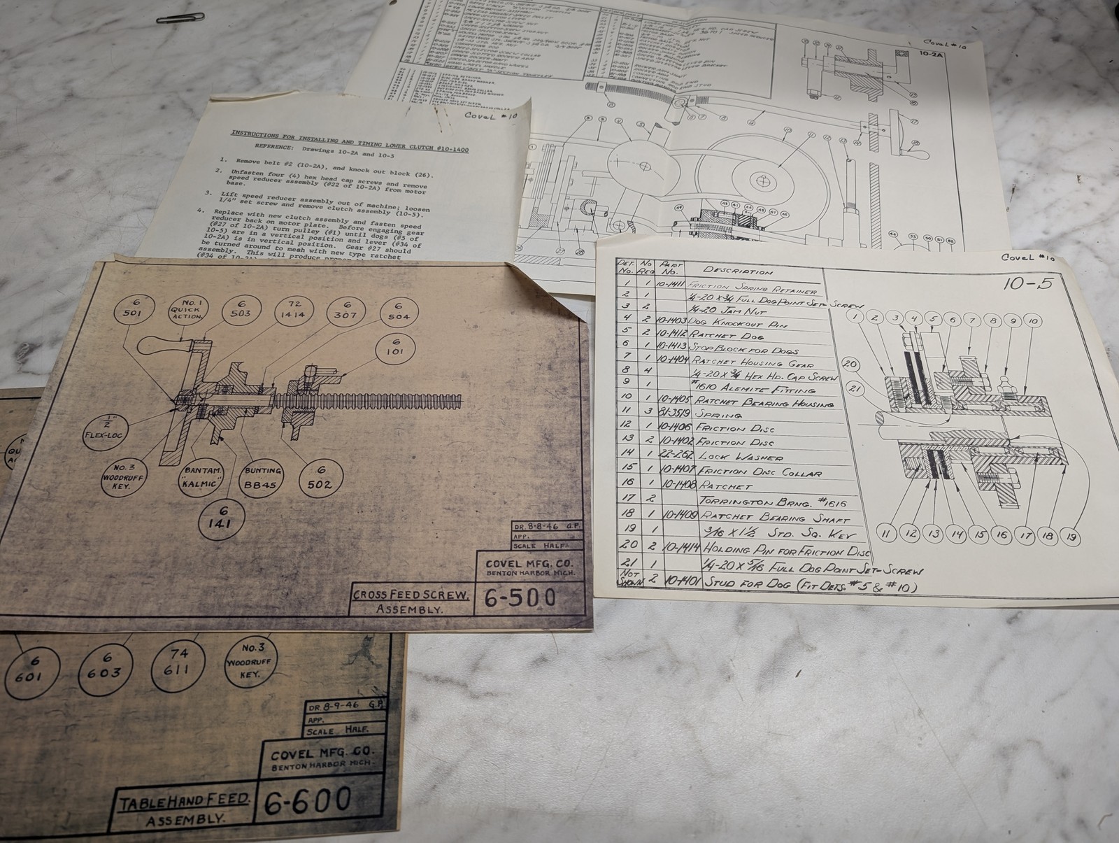 Covel Mfg Machine Tool #10 Instructions Prints Drawing Information Diagrams