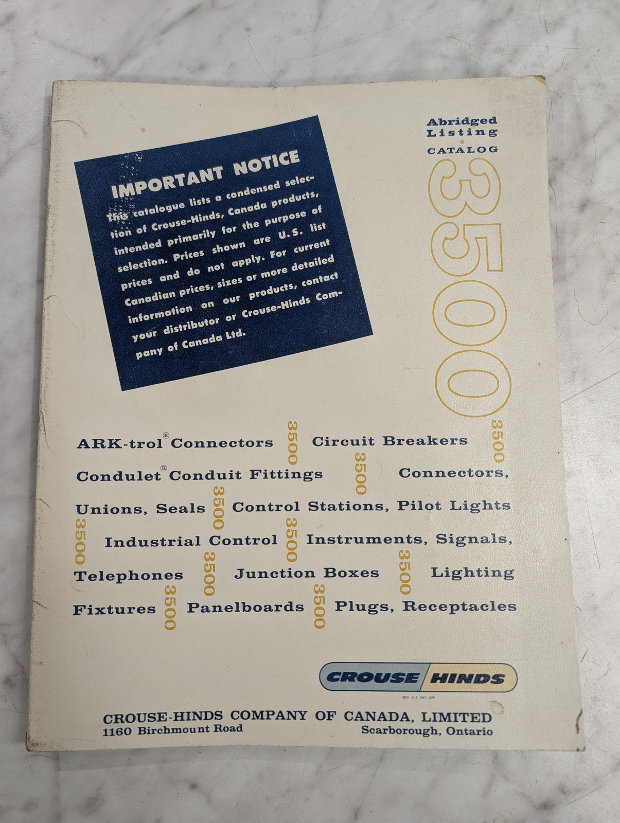 Crouse Hinds Abridged Listing Catalog 3500 Sales Literature Brochure