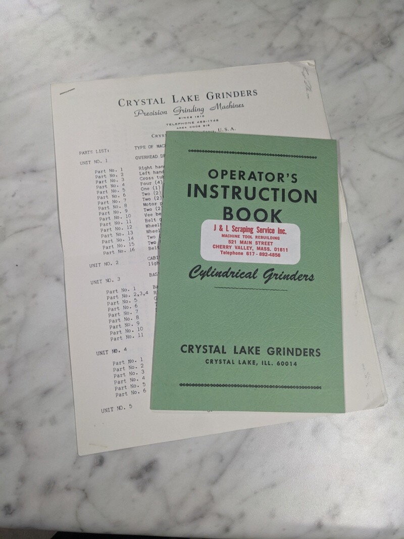 Crystal Lake Grinders Operator Service Manual Book Cylindrical & Parts Listing